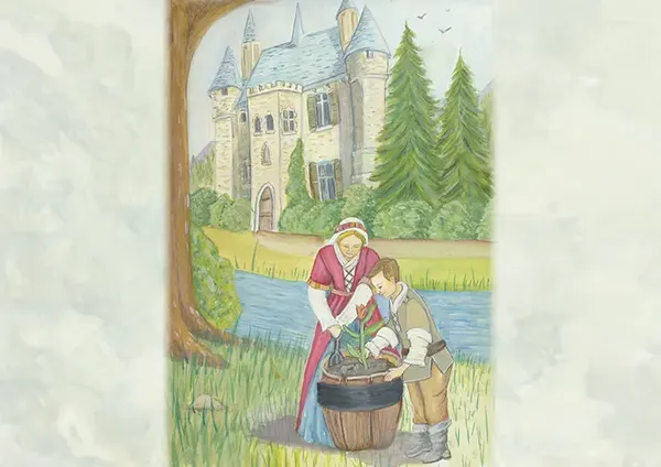 One day, a lady named Genevieve went strolling through the queen’s flower gardens. Observing the flowers that grew there she found a harmonious variety: there were marvellous roses, snow-white lilies, daises the colour of burnished gold, ruby red tulips, purple violets that rivalled the lustre of amethysts and vibrant orchids. …