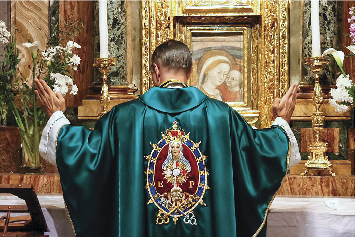 A son is one who fully understands his mother, and knows how to discern her attitudes of soul through simple gestures or looks. But when there is a perfect correspondence of love between mother and child, there arises an even more sublime relationship: they come to share one single heart. Thus, if asked to represent the hearts of the celestial Personages of the fresco, the Author would place just one, rather than two hearts… That is what it is to be her child, and that is the degree of union with Our Lady to which each of us is called.